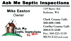 Business Card - Ask Me Septic Inspections |